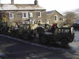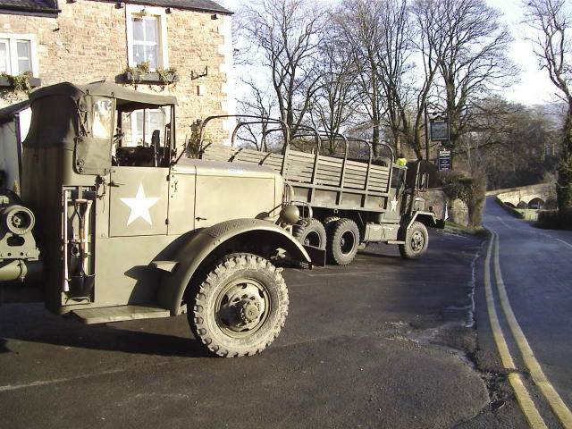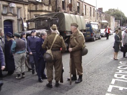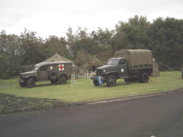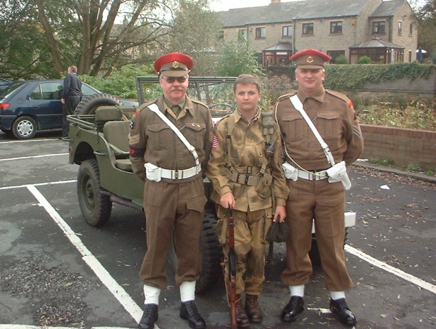 Other vehicles that turned up were Bob and Sandra in their Jeep, Tim and Christine in a Jeep, John and Katie in Tim's Dodge Command Car, the vehicle organiser for this event Dave McCoull in his REO, Pete Morgan in his Jeep, and (I must improve my memory as I can't remember his name) also in a Jeep. New members of the MVT, Timothy Hardy (Military Police) and his son James (US 101st Airborne), who came down from the North of Cumbria for the day, managed to get a lift on the parade in Pete Morgan's Military Police Jeep. His Jeep is not yet ready for the road, so we'll allow him a little slack. Other special arrivals were David and Spencer from the Pickering Home Guard who were asked to walk in the parade. Bargain of the weekend had to have been the curry Bob ate on the Saturday night; it cost £1.00. If only all curry houses were like that. Apparently Bob was not too well on Monday and was considering going home from work early as a result; could this have any connection?