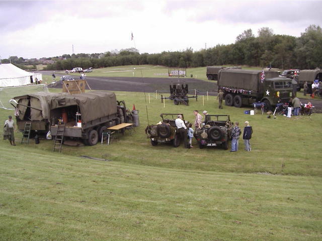 "Ian and Esther set off early Friday morning to drive the 105 miles to Oswestry in their Jeep. The trip took them five hours including stops for breakfast - Morrisons comes highly recommended - and brews. Camp was set up in the grounds of the Park Hall Countryside Experience in time to register at Home Front HQ. There was just time to eat before the evening's entertainment - the George Formby Experience - which proved to be both enjoyable and informative.