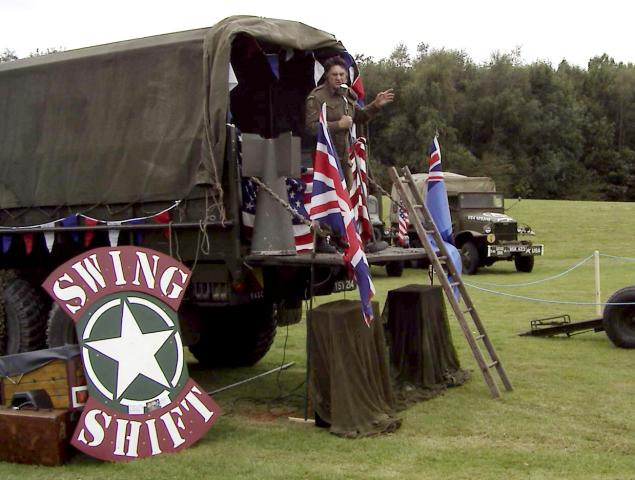 Elvis is not dead; he's alive, in the British Home Guard and singing at the Arvin Meritor Charity Open Day from the back of a Leyland Hippo. Also providing entertainment on the day was Hepcat Mike with his Swing Shift