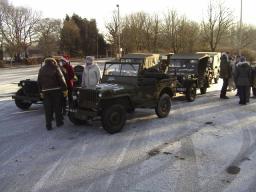 Up early on the Saturday morning (by nine the ice had thawed off the tent!) in time for the first parade of the weekend. The parade was admirably led by Ian and Esther in the "Screaming Eagles" Jeep, with Winston Churchill standing on the front of the Jeep complete with cigar and V sign, adding a touch of realism to the proceedings.