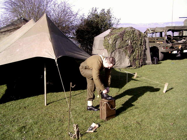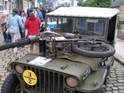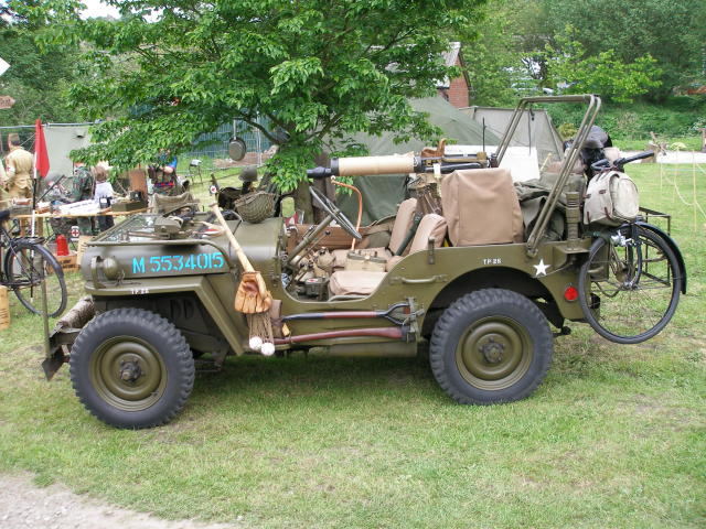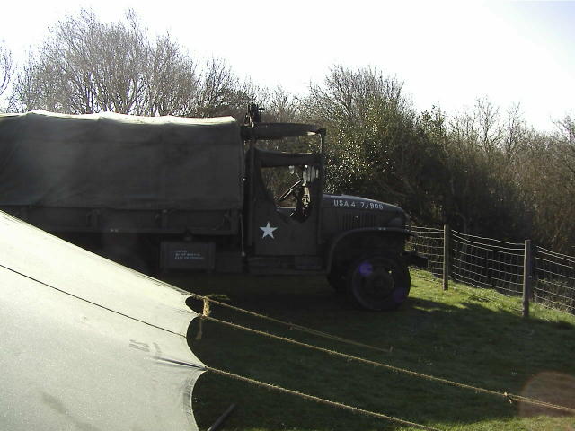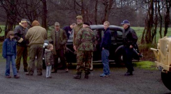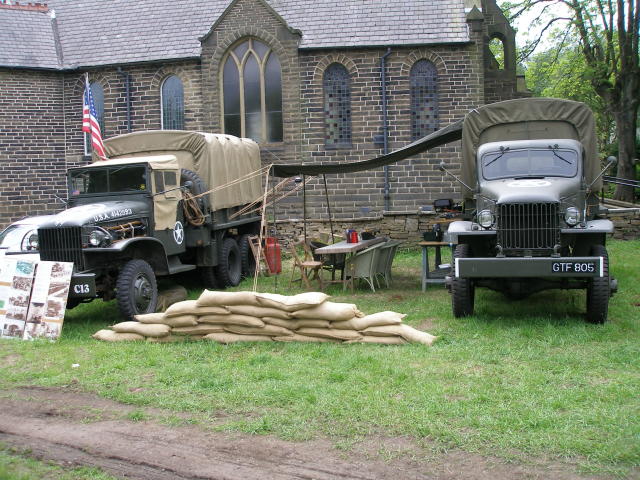 Good weather made this, the first of our group's events, a great weekend. The field was full of military vehicles that included the regular Jeeps and Dodges, but also some surprises. The Allsop brothers brought their Half Track, though it was only by good negotiation with one of their wives that they were able to keep it. Allegedly bought on the QT that caused a near divorce, but when the increase in value over what was paid was explained, peace reigned again. Tony Martin brought a Spartan Armoured troop carrier, a vehicle still in service with the British Army. How he got hold of it I'm not sure, but he does like to collect armoured vehicles. A number of Eastern European vehicles were represented by a couple of Gazs and a Trabant. The weekend started on the Friday night with a barbecue put on by Frank and Angela Brown. From what I hear, there was more food than they knew what to do with, and it was reported to be excellent. There was a convoy/road run on both Saturday and Sunday, Saturday's being the largest, both with a Police escort. The public came in to look around on both days, helping to pay for the event to be staged. The dance was held in the village Institute where we were entertained by an 18 piece swing band, and meat & potato or cheese & onion pie supper provided by Paul Higginson. The North West Collectors Association gave a good battle display on the Sunday with the Americans and Free French beating the Germans again. There was a lady sitting close to me who was being sprayed with empty cartridges from the German machine gunner, such is the power when they are ejected.