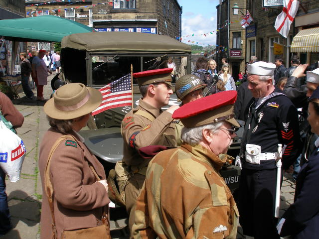 Entertainment was provided for the full three days with, amongst others, Paul Harper singing at various locations throughout the weekend, displays of swing dance, and local brass bands playing. The convoy on Sunday set off from outside Ramsbottom and ended up at Rawtenstall. It was not a large convoy but comprised a few larger trucks including from our group Richard's Mack, Dave's REO, together with a number of Jeeps including Pete's in which I rode shotgun.