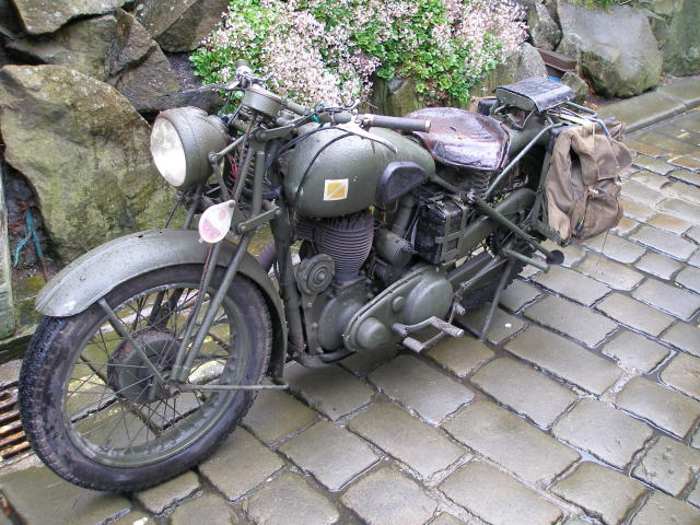 There were some interesting vehicle displays, with Simon Johnson (editor of The Greensheet - the MVT vehicle sales sheet) displaying his James motorcycle on the bonnet of his Jeep as done during wartime. There were a few other motor bikes there including a trio of BSAs, two of which are shown here.