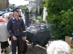 The North West Military Collectors Association provided the battles on all three days, entertaining the crowds with some of the longest and most intense blank firing I have come across. They did not seem to be plagued by jamming weapons that has spoilt the scenarios in the past, and had a Jeep with a machine gun mounted on the back for the Allies, while the Germans had a motorcycle and sidecar. They are a team worth seeing. Unfortunately I was plagued with difficulties with my new camera that seemed to be consuming batteries at an alarming rate, so I didn't have enough charge left to take any photos. If anyone wants to send me some (Martin/Sue I know you took some) I'll post them on here.
