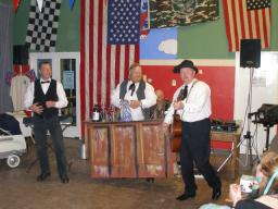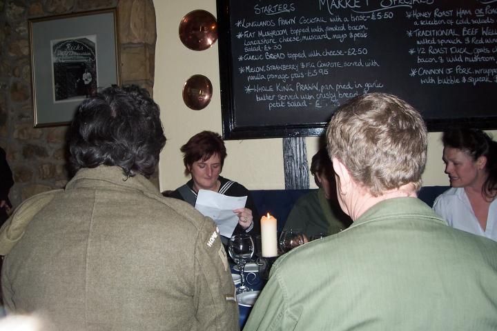 Following a lot of hard work by Bob and the team, the evening entertainment on the Saturday was provided by Ian Wray (Comedian and rock 'n' roll singing/dancing), Rupert/Matt/Dave as the Foggy Bottom Boys again. DJ was Tom Cat Le Tache whose equipment was linked into Bob's new Karaoke kit, so we had a number of volunteers to try out the new acquisition. Guest of honour were a number of the governors of the Leeds Children's Home who really enjoyed last September's bash so have returned for more.