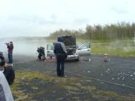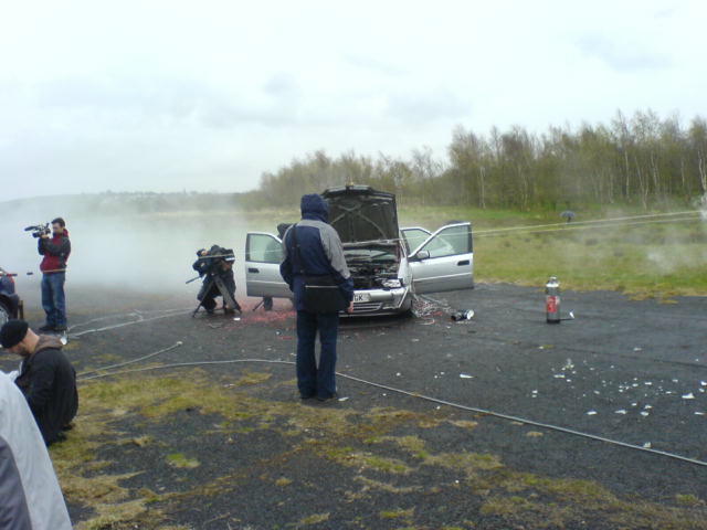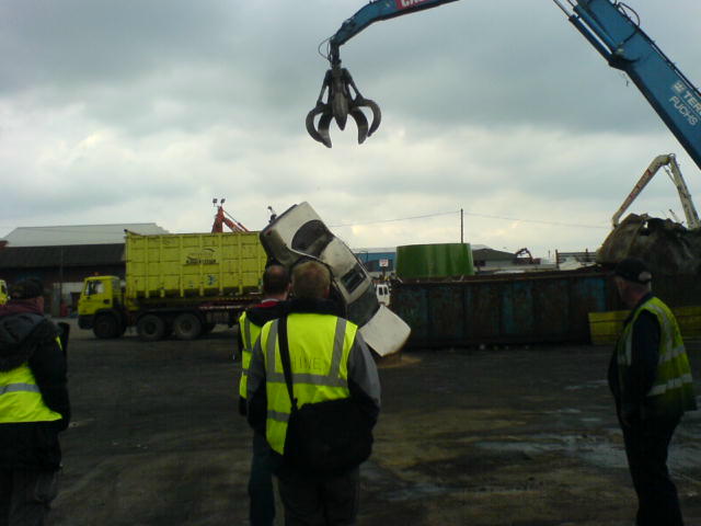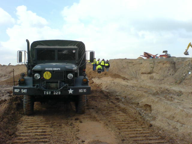 It is probably a dream within you all to use your vehicles within the film and television industry. Images of Clint Eastwood, cigar in mouth, jumping out of your Jeep, or a GMC simply forming part of a convoy of troop carriers, but perhaps carrying Damian Lewis in Band of Brothers. Well occasionally those dreams come true, but not quite as you expect. Dave was contacted by Pete Cartner who had earlier been contacted by a TV crew that needed an all wheel drive vehicle to ferry equipment and crew around a field. Dave took up the challenge. Despite their request for all wheel drive, the REO only ever needed front wheel drive (in high ratio) to get out of the sandpit as the conditions were not too bad. The programme was being made at British Aerospace at Samlesbury and is apparently a Top Gear type of programme that will be shown on Channel 5 later this year (could be Fifth Gear I suppose?). A Nissan car was prepared with explosives and blown up, then dragged until the tyres burst then dropped into a sandpit near the M6 which is where Dave's REO was needed to take the camera crew etc to the bottom of the pit for filming. Finally the car was taken to a Breaker Yard and dropped onto concrete finally destroying it. The truck will not be seen unfortunately as it was only used as transport and so did not feature in its own right. Ah well, next time you might be luckier, Dave.