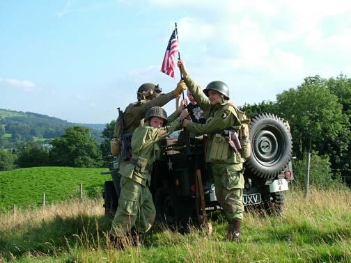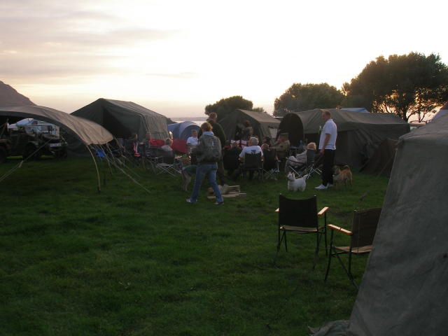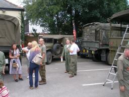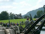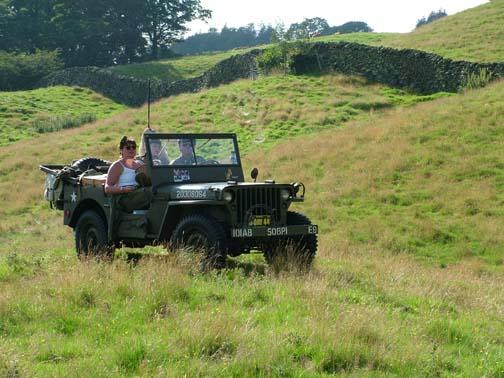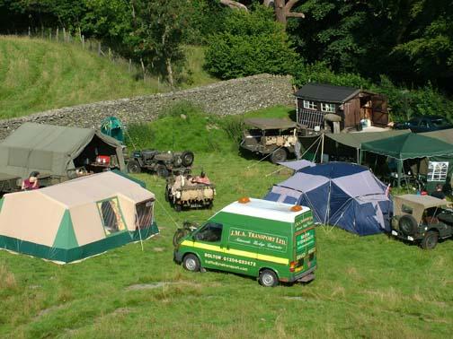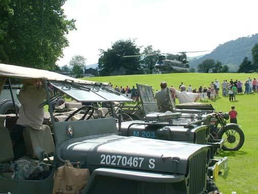 Stuart Reid sent this report from the Windermere Air Show that was co-ordinated by Simon Gregg. "Thanks are due to Simon for arranging our visit to this event and the use of his Dad's superb field for our camp and off roading track. A few vehicles engaged 4wd and made it to the top where there was a great view down Windermere. Simon had also been busy preparing the luxurious his and hers facilities, a wall and a hole. Tents started going up on the hot and humid Friday afternoon. The water tight integrity was tested in the torrential downpour, thunder and lightning later in the evening as we sheltered, barbied and sampled Boyan's tiffin. We left the wet camp to dry out on Saturday morning and left in convoy to the glebe, Simon's Dodge, 2 motorbikes and lots of Jeeps. We were well positioned to enjoy the activities in the arena and Air show, which included the Dakota, Spitfire, Hurricane, Chinook,Yakovlevs, Hawk and Jet Provost. The good weather lasted all weekend, lots of visitors showed interest in the vehicles and were given the opportunity of sitting in them. After returning to the camp on Saturday evening the BBQ's got going again including a superb spread laid on by Angela and Frank, Angela had also braved the air show in some wonderful vintage swimwear. After the BBQ the world was put to right accompanied by Mr Jack and Mr Daniels. Various topics including how long a chicken can run around for, after having his head chopped off and how many seconds the space shuttle Challenger went up for before exploding (73). Sunday was another hot and busy day with more vehicles and troops arriving. The RAF Falcons display team dropped in, as did the Chinook and Sea King. From 3 vehicles last year to a well-attended event this year, Simon is now planning even more for next year."