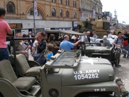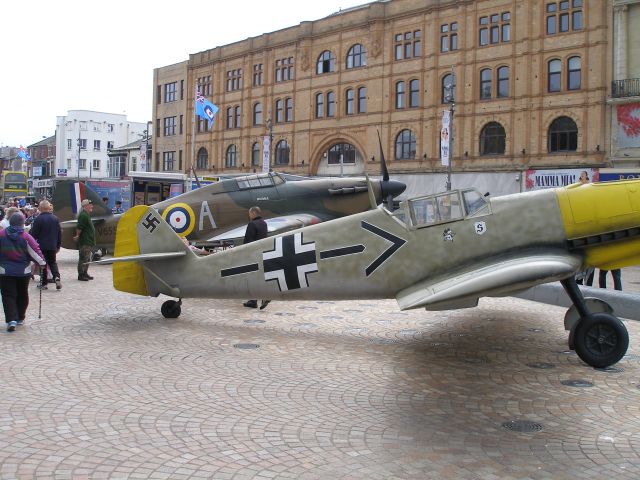 Once host to the original Veteran's week, Blackpool continues to mark this country wide event with a gathering of the modern day military and a few of our historic vehicles. St John's Square in the centre of Blackpool was the venue for this year's event. Three vehicles from our group were there, Steve and me with his M38A1, and Ian and Esther Wray with their WW2 Jeep and Russian Dneipr motorcycle and sidecar. We were joined later by Andy Minns with his Abbot SPG. Also on display were a mock up of a Hurricane and a Messerschmidt ME109 fighter planes, display tents from a number of military based charities and the Territorial Army. Our display included a collection for the Royal Air Force Benevolent Fund and raised a total of £196.19.