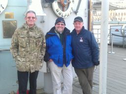 Norman Callaghan arranged a trip to London for a few of our members. As a result of contacts in the system, a number of our members enjoyed first class travel including breakfast on the way out and evening meal on the way back. The day is best described by Dave Salisbury who sent in this report. "We set off from Preston at 0700 hrs. reaching London Euston at 0910 hrs. Having purchased our underground tickets from the guard on the train, then round the corner for a full breakfast £3-50 giving the commuters chance to clear the tube. Then it was off to Greenwich to the National Maritime Museum. We stayed in there till just before 1300 hrs. when we went to the Meridian building to watch the time signal. Then we set off to go round HMS Belfast passing on our way the Cutty Sark, a beautiful old ship. On the starboard side of the ship is the entrance to the Greenwich foot tunnel which we walked under to come out in front of Island Gardens station for the Docklands light Railway on which we travelled to HMS Belfast. We left the tube and waited for Dave to come up in the lift but unfortunately he did not arrive so we went to the pub to wait while "JONNY" waited outside the pub. They did turn up though they went out through a different exit. On reaching the ship, because there were ten of us, we bought a block booking ticket for £10 each. Having spent the afternoon on the ship we felt that a drink was in order so set off for the pub next to Euston station, thereby not having far to stagger to the train. The pub did a very good sausage and mash, but keep clear of the meat pies you could easily choke on them. We were met in the pub by Ian who had been up to Kew to check on his father's war record and Paul who had been to Hendon RAF museum. Every one had a good day thanks to Tanker Dave, once again, and Norman."