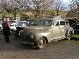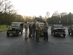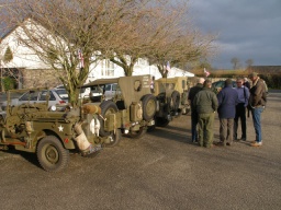 Waking up on Saturday morning to ice in the washing up bowl was a surprise, though it was very cold at night so it shouldn't have been too much of a surprise. Events had been arranged for Saturday to show the visitors from the camp some of the artefacts collected in the name of our hobby. Dave Salisbury and Frank & Angela Brown both had displays of weapons, while Boyan had a collection of memorabilia. Jim Ashcroft gave a display of sign writing and displayed a number of his pieces. The vehicles attracted a lot of attention, ranging from a WW1 Crossley lorry through Jeeps and other assorted WW2 vehicles to more modern Bedford and Leyland trucks. The run around the camp roads took place with the families joining us in the vehicles. This was a fairly long run through the housing quarters of the camp and onto the land used for training. It was here that Warwick Boulton from the Manchester Area was able to let his hair down in his 1957 French AMX-13 tank, sliding the tank through corners and performing the standing start speed trials against an FV180 Combat Engineer Tractor. A photo session was arranged with the camp commander, Pip Robinson from the MVT CoM, and a veteran from the D-Day landings. It also gave an opportunity for some Glamour photography.