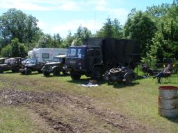 Two days of sunshine and good company, what else could you ask for. Well a dry night on Friday might have helped, but beer tents and Jack Daniels soon made up for that. The plot allocated to the MVT was full for most of the weekend with some folks having stayed the full weekend and others calling in for the day visiting. The show was tremendous with stalls and marquees selling anything and everything. Entertainment was provided in a number of places with Monster Truck displays and lawn mower racing providing an alternative petrol head diversion to the static displays. There are several stories that I heard over the weekend that I can't print, but the culprits all know who they are. Food is a key element of most country shows and Scorton is no different. Burger bars were there of course but also Indian food and a Chinese Noodle bar added to the selection. Jonny Newbould admitted to making use of a late night discount at the Noodle bar where two boxes were to be had for £3. A great way to soak up the earlier liquid refreshment from the late night bar in the beer tent. Vehicles ranged from the smaller Jeeps to larger Bedford and Leyland trucks. In fact Darren Swann's Bedford won the best Military Vehicle Award. Altogether a great weekend.