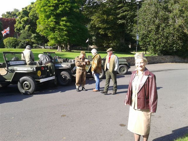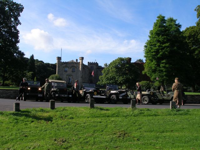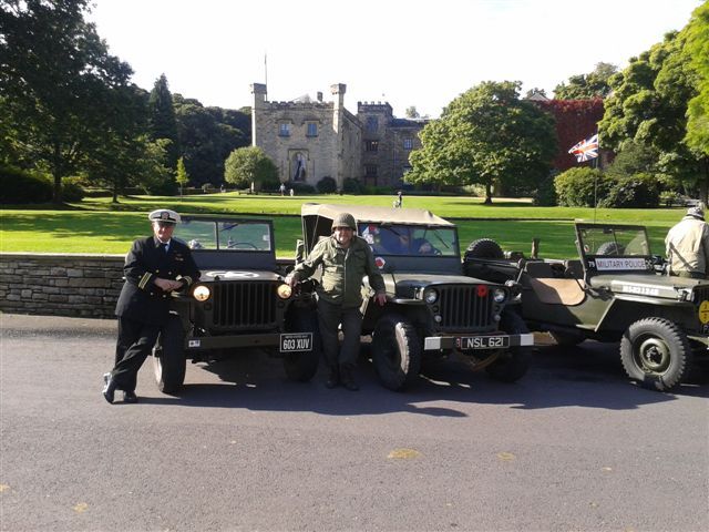 Graham and Christine White joined the Parish of Cliviger in arranging a weekend festival in aid of the Parish funds. The MVT group was invited so on the Saturday 6 Jeeps and Graham's Moto Guzzi turned up to give the locals something of a military nature to look at. A run on the Saturday took us out on a 45 minute run around the countryside near Burnley, taking in Towneley Hall for a photo shoot. The weather was bright so we had a plenty of opportunities for good shots. Following the run, on our return to the event field the official opening was carried out by a local farmer who remembers the wartime events in the village and was happy to tell us about them. Ian Coats arrived later on with his Russian Sidecar outfit, and to join the evening entertainment. I am assured the evening was very enjoyable with the local pub putting on some excellent entertainment.
