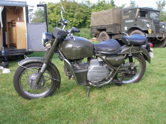 Graham showed off his latest Moto Guzzi acquisition. It is a 500 cc model Nuovo Falcone Militare. If you follow it, you won't do that again. Its single silencer is not up to the job and deafens any following drivers so Graham is going to return it to its original condition with a twin exhaust, unusual for a single cylinder model.