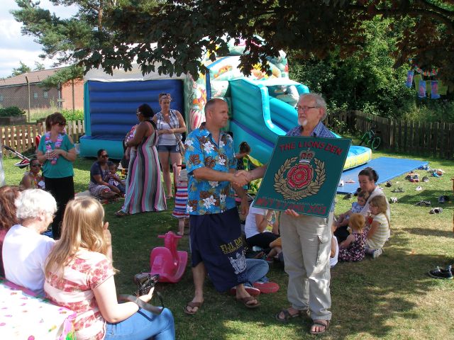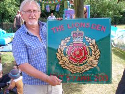 Back in April we visited the Army camp at Weeton, near Blackpool, to hold a camp and to join the families who remained as their partners headed off to Afghanistan. Jim Ashcroft set up a display of his artwork and gave a demonstration of panel painting to the youngsters there. It was decided that he would produce a plaque for the Weeton Barracks Welfare Centre, called The Lions Den. On July the 24th a number of us from the SC&NL Area went to the Barracks to present the plaque that Jim had painted.
