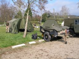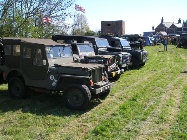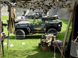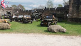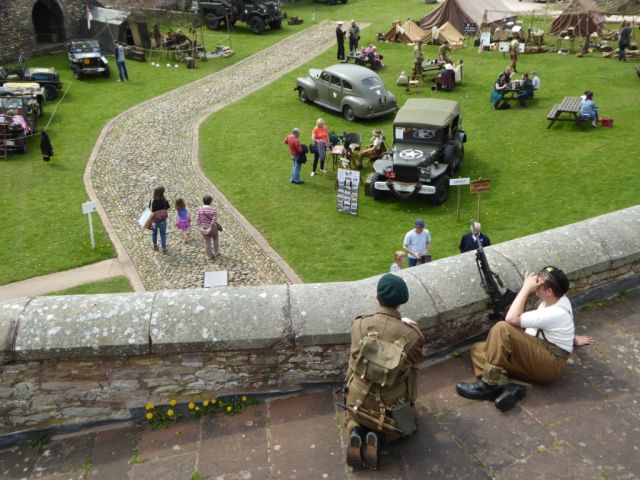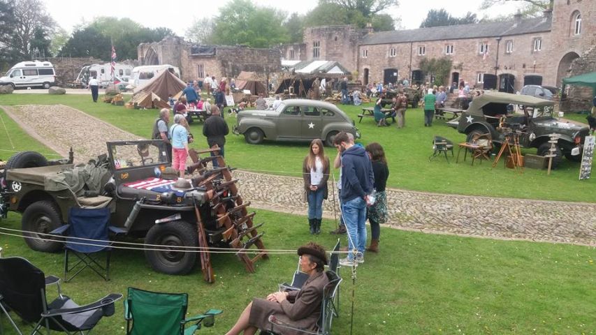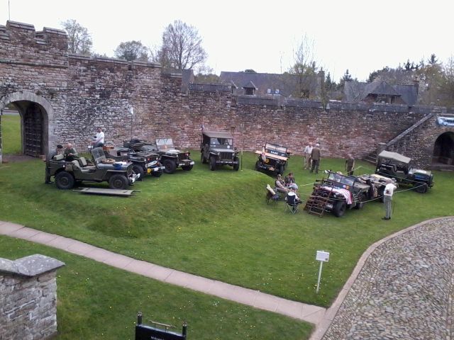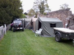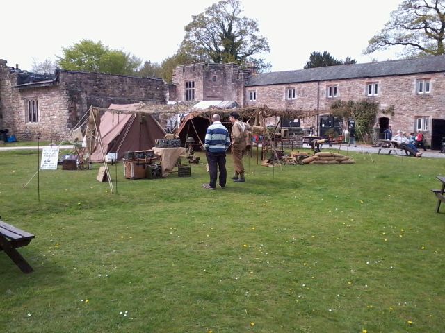 On the outskirts of Penrith lie two ruins, Brougham Castle on the banks of the river, and Brougham Hall a little further inland. We were invited to help arrange a 40s weekend at the Hall, built in the fourteenth century, so Boyan and Susie agreed to help set up the event. The weekend came amid sweltering sun and almost freezing cold nights. The location was praised by most of the people I spoke to with high walls, some ruins, and some rebuilt sections. The rebuild started in 1985 following the purchase of the Hall to prevent its demolition to make way for a new building project. The Hall hosts a number of small businesses including the Eden Brewery that fortunately for us were selling their bottled beers from a stall. Bin ends at a pound per pint was what I would call a bargain. So much so that Norman bought 24 bottles to make sure the stock stayed with us. The 40s tents and vehicles were set up in the court yard, in pride of place, whereas the post war vehicles, Land Rovers really, were parked on what appeared to be a lane alongside the Hall. Only after the tents were pitched and the vehicles parked up did we realise the "Lane" was actually on top of a wall that was buttressed to avoid it falling over or collapsing. It worked as the wall had been standing like that for a few hundred years, not with a few Land Rovers and Jeeps on top of it though.