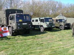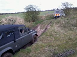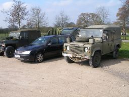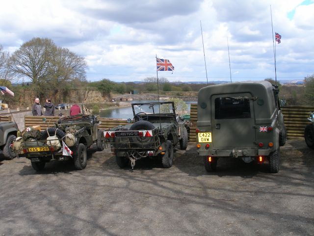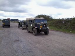 The off road run on Sunday comprised 4 Pauls, and Frank Brown, but we'll call him Paul to avoid confusion. There were two Pauls with Land Rover 110s, Higgins and Harrison, Paul Sennant with his Leyland, Paul Connolly with his Jeep and Paul Brown with his Morris Quad, limber and 25 pounder. They all managed to get over the off road course, eventually. Remember Paul that the Leyland has a diff lock especially for those muddy patches. Paul's Land Rover 110 tyres soon filled with clay on one stretch and had to be retrieved. I apologise for wimping out as I had agreed to go after Paul down that muddy gully but after he got stuck, cowardice overtook valour.