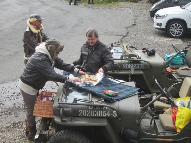 Ignoring the forebodings of the doom-mongers and naysayers, a hardy band of jeep riding adventurers prepared to set off – Jon, Susie and Julia, Dale, Dean and Mark, Jonathan, Boyan and Alex, Ian McC, Howard and Di and…where’s Keith and Celanie?? Then, at the last moment, before the convoy swept off in a cloud of exhaust fumes, Keith arrived having had to make a quick swap from a MUTT with a wonky wheel to his Willys. Hurrah – a full complement of 5 jeeps and off we go.