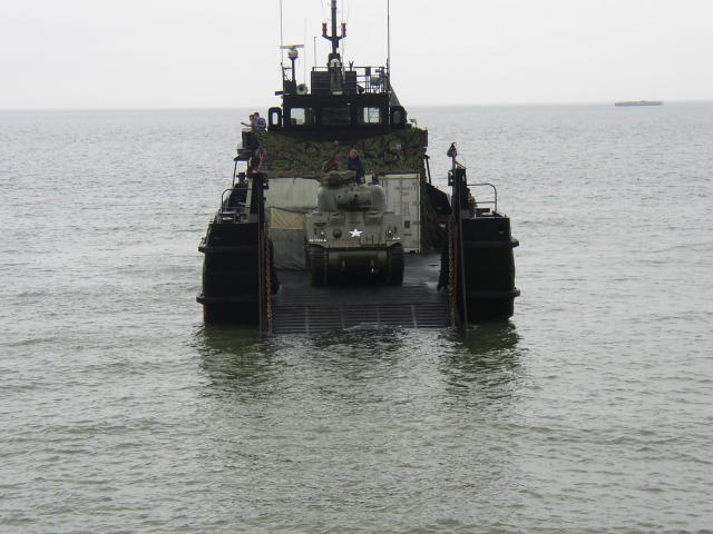 As part of the D-Day event, a number of landing craft sailed in to Arromanche carrying a Sherman and a Churchill tank. The landing craft were modern day equivalents of the LCTs used in 1944, and the tanks themselves did not launch onto the beach, as they are too precious to risk exposing to salt water.