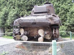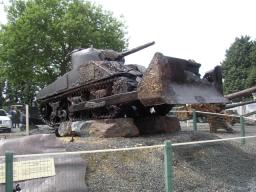 The area is full of museums to celebrate D-Day. At one of them a number of tanks have been recovered from the sea, restored to an extent so they do not rot any more, and put on display. These examples show a Sherman adapted with a bulldozer blade, and the rear of a DD Sherman (named after the Duplex Drive that provides power to the twin propellers.)