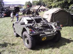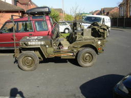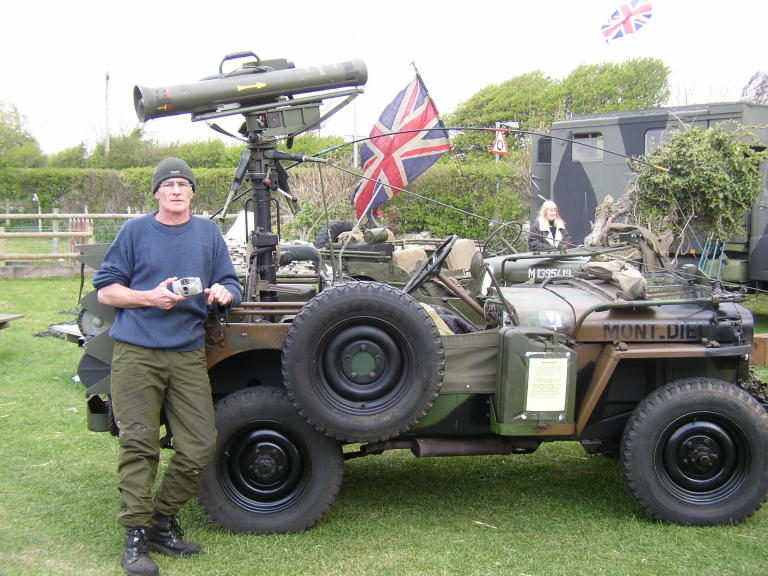 Steve's Hotchkiss complete with missile launcher. This is a French built Jeep made under licence. They were built with 24volt electrics as opposed to the standard Jeep's 6 volt mainly to deal with the wider variety of tasks that they would be put to involving use of electrical power.