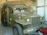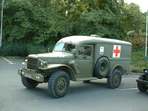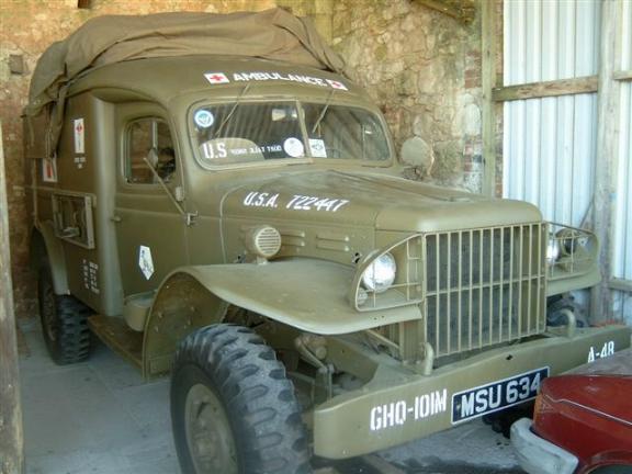 This photo was one of a set that persuaded the current owner to travel all the way to the Isle of Wight to buy it. It is a four wheel drive ambulance fitted with a 6 cylinder side valve engine common to many other vehicle built on the Dodge chassis. It has a four speed gearbox with a low and high ratio, though first gear in normal ratio is so low that setting off is usually carried out in second. The ambulance body can carry four stretchers, two on the floor and two hung from metal hooks on the side of the vehicle and web straps from the roof. There is not much room in the back with all four stretchers in position so I would guess a medic would have difficulty in tending the wounded. Maybe they were only used as a means of transporting the wounded unlike a modern day ambulance where full resuscitation can be carried out.