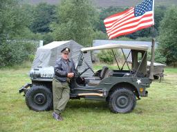 1942 Jeep rebuilt with a new tub. This has been converted to run on Dual Fuel with the LPG tank situated where the back seat should be. No real loss in performance has been noticed, but the £ certainly travels further. Other modifications are the addition of an ammo box between the two front seats. So what you may ask, but inside is a cassette player and a stock of Big Band cassettes. Dave shall have music wherever he goes (to misquote the nursery rhyme).