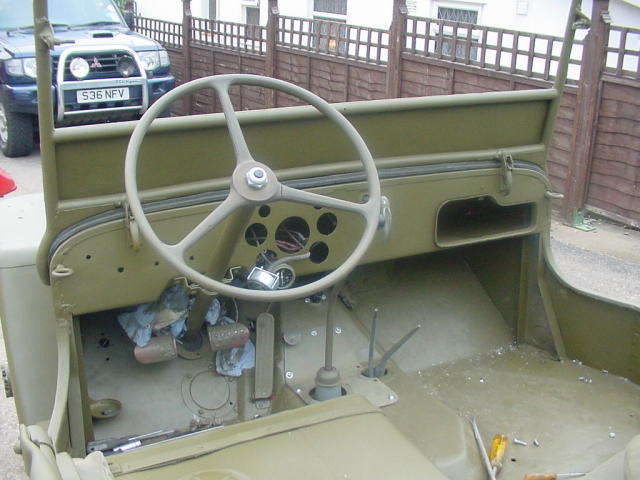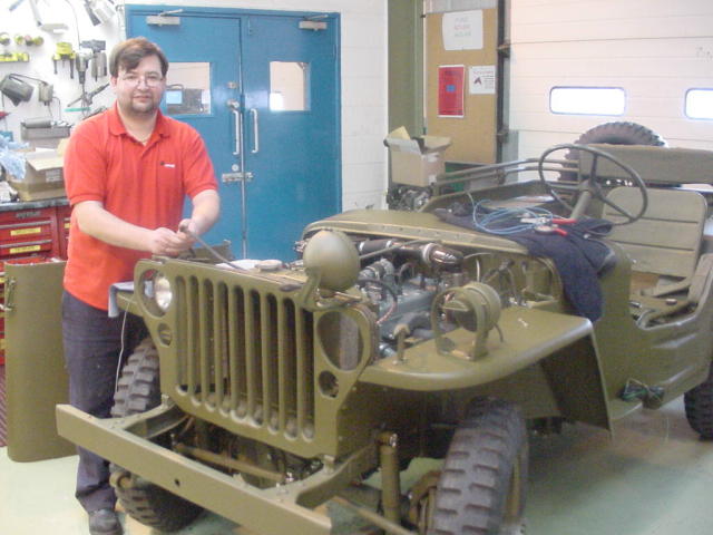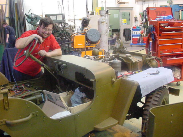 3/4/2004. Almost on the final straight. The electrics on the Jeep are not up to the standard Bob wants for his Jeep, so it's off to see John Davies who is a qualified auto electrician, and fortunately works for Bob. A whole new wiring loom is being made and fitted, so the electrics should not cause any trouble when on the way down to Normandy. If anyone else needs a real wiring loom (not the modern day wiring ribbons) making up for virtually any vehicle, Jeep or truck contact me though the address on the home page and I will put you in touch with John. The wiring should be completed within the next few days then it's on with the markings and ready for its first run out.
