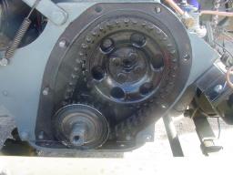 Received 21/3/2004, the news that the engine was started and ran fine....for a while. Suddenly a rattling noise was heard - could it be the ghost of Jacob Marley? No, a screwdriver pressed to the ear and held against the timing chain cover revealed a rattling timing chain. So off with the radiator and the timing cover to look at the damage.